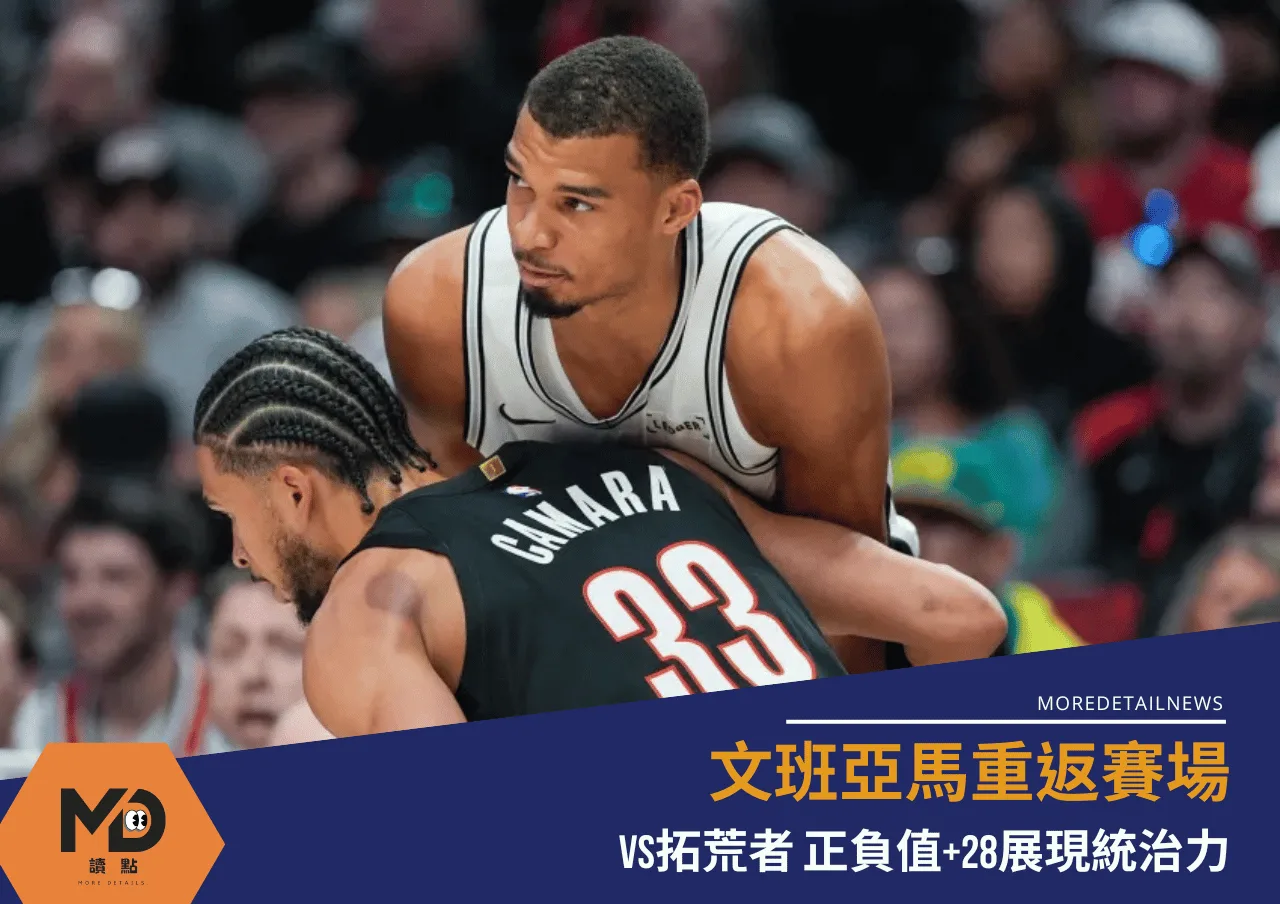 在經歷缺陣休養後聖安東尼奧馬刺隊的核心維克多文班亞馬(Victor Wembanyama)在第4戰展現無可取代的統治力,這位巨星面對波特蘭拓荒者隊(Portland Trail Blazers)嚴密防守依然繳出27分與11個籃板及7次阻攻的恐怖數據,他外帶4次抄截與3次助攻證明自己在場上無所不在且極具威脅性的破壞力,這樣全方位的表現不僅摧毀對手禁區得分企圖更讓他拿下正28的正負值代表只要他在場上球隊就能取得不可思議的壓倒性絕對優勢。